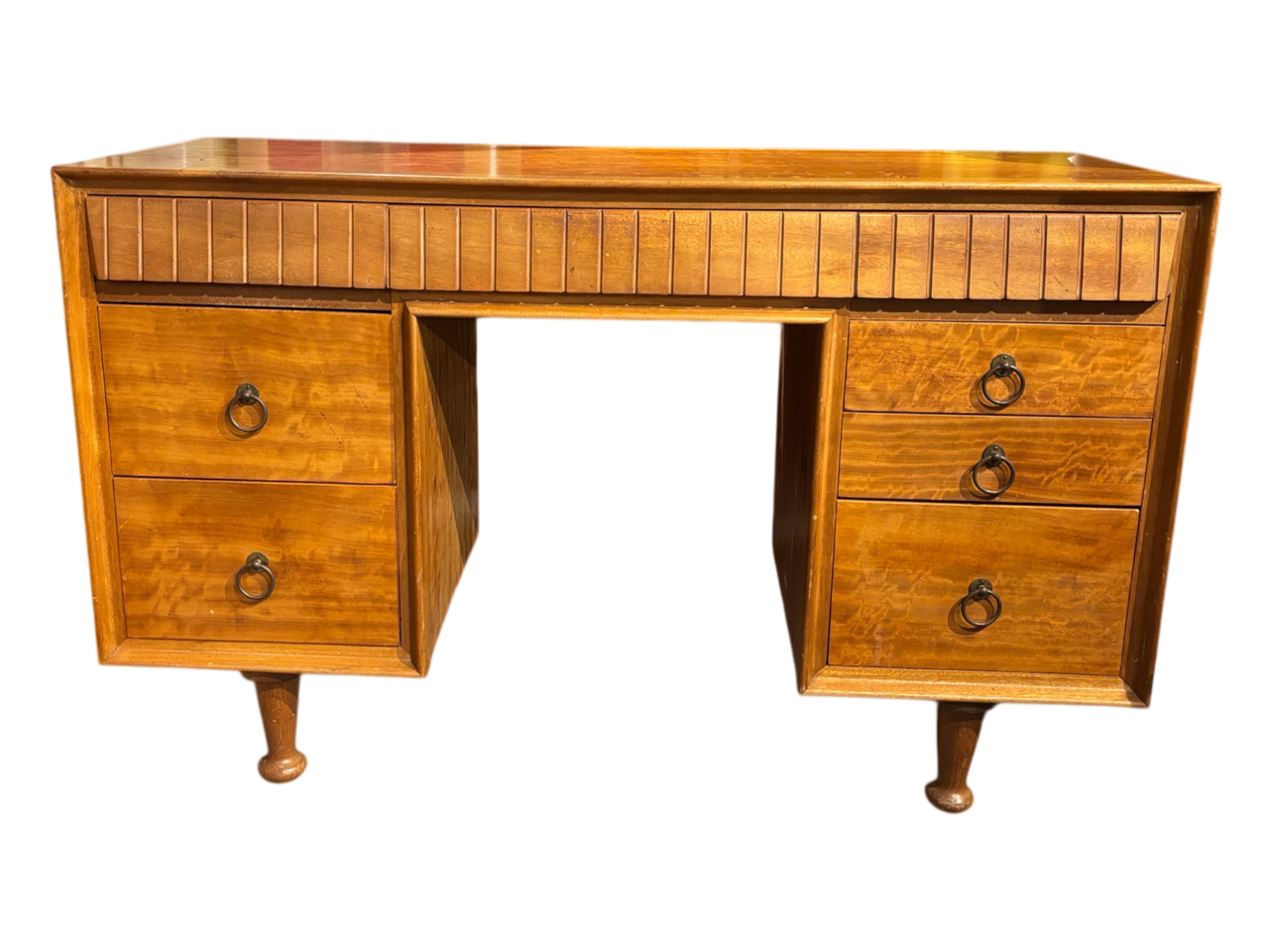 Antique English Tambour Desk with Leather Top & Brass Capped Legs