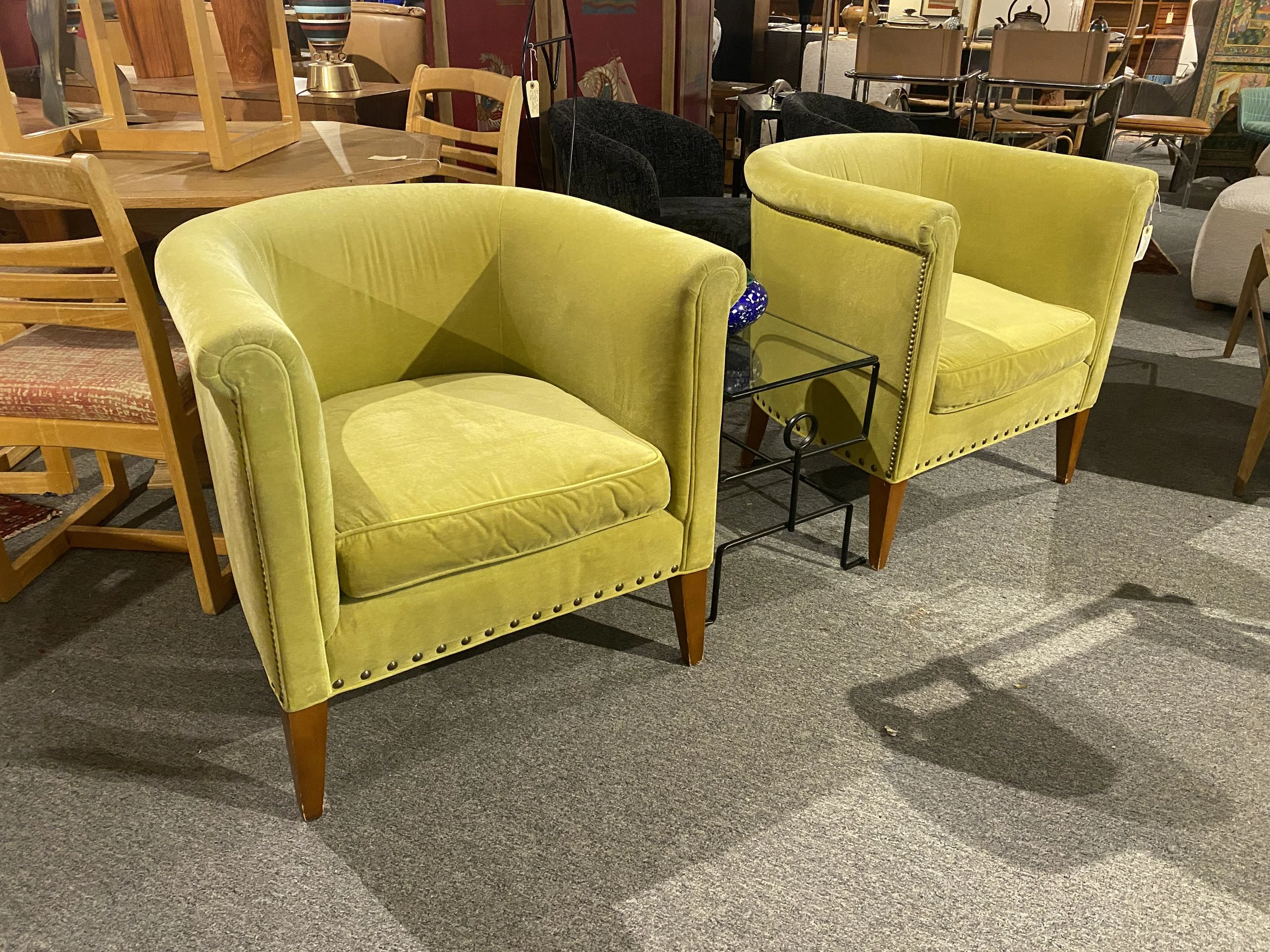 Pair of Mitchell Gold & Bob Williams green velvet horseshoe chairs